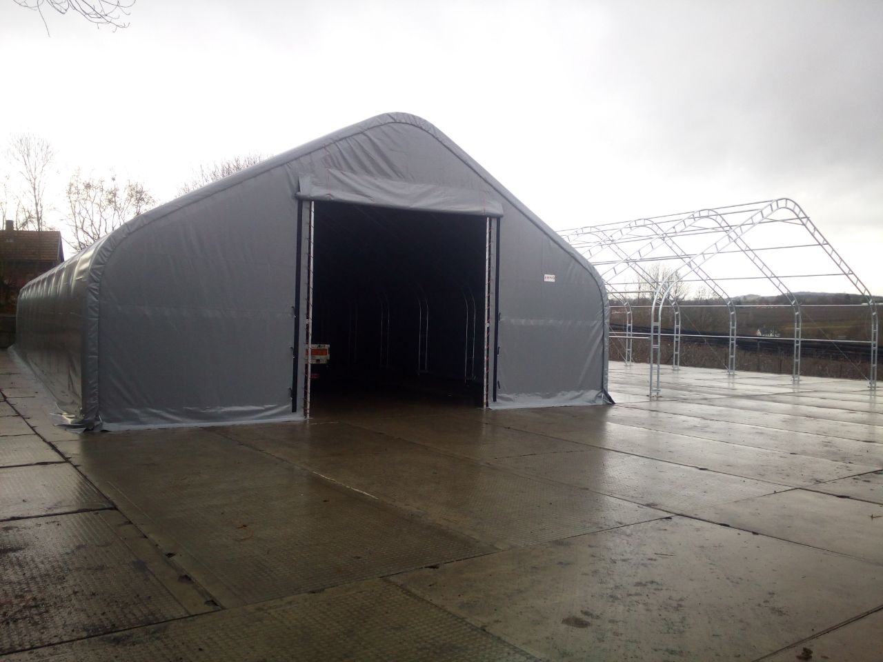 Hala je snadno sestavitelná a může být kotvena do pevné plochy nebo přímo do země. Halu lze bez problémů demontovat a postavit na jiném místě.